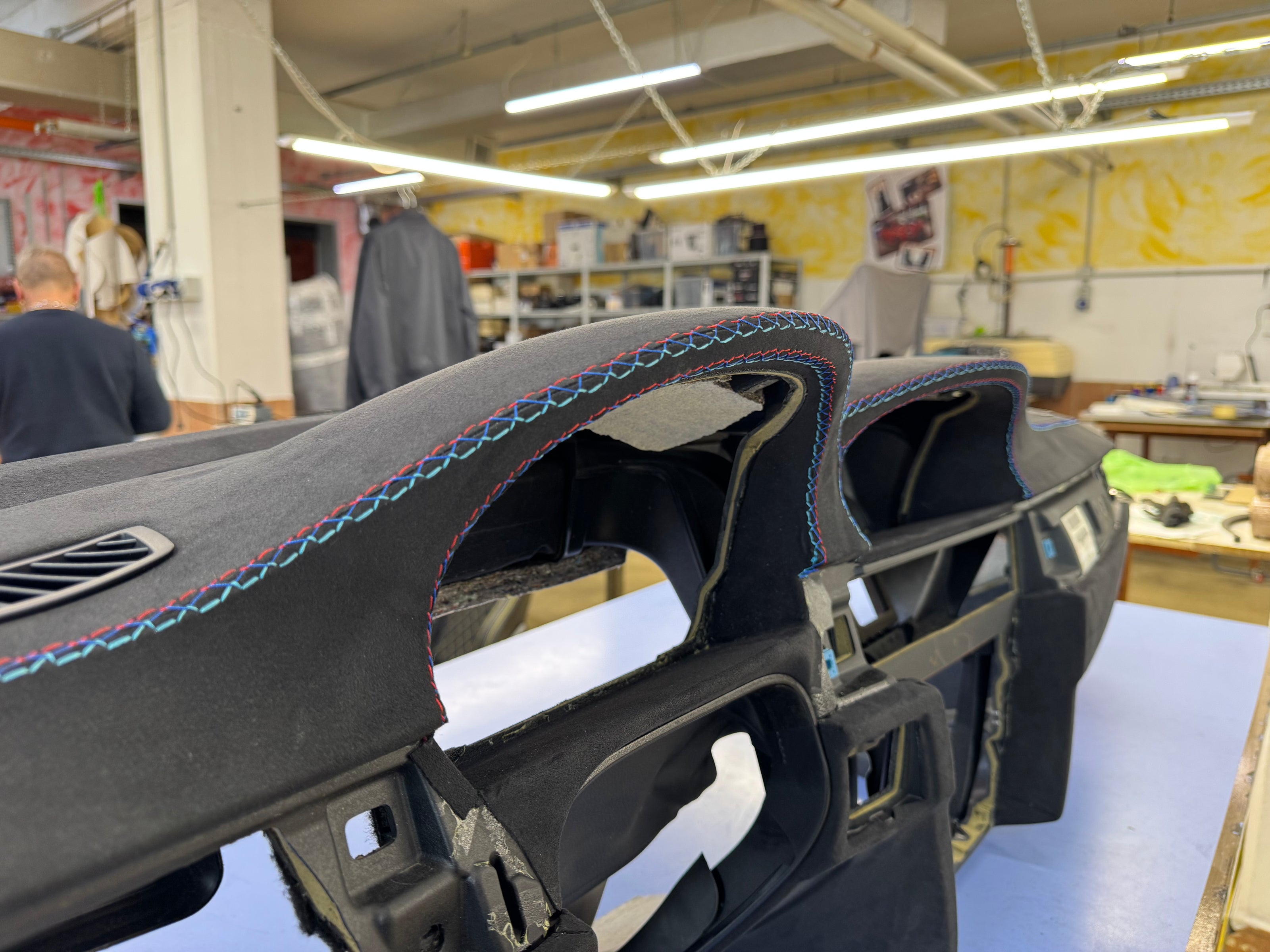- Rimontaggio: Reinstalliamo il cruscotto rivestito nell'auto.