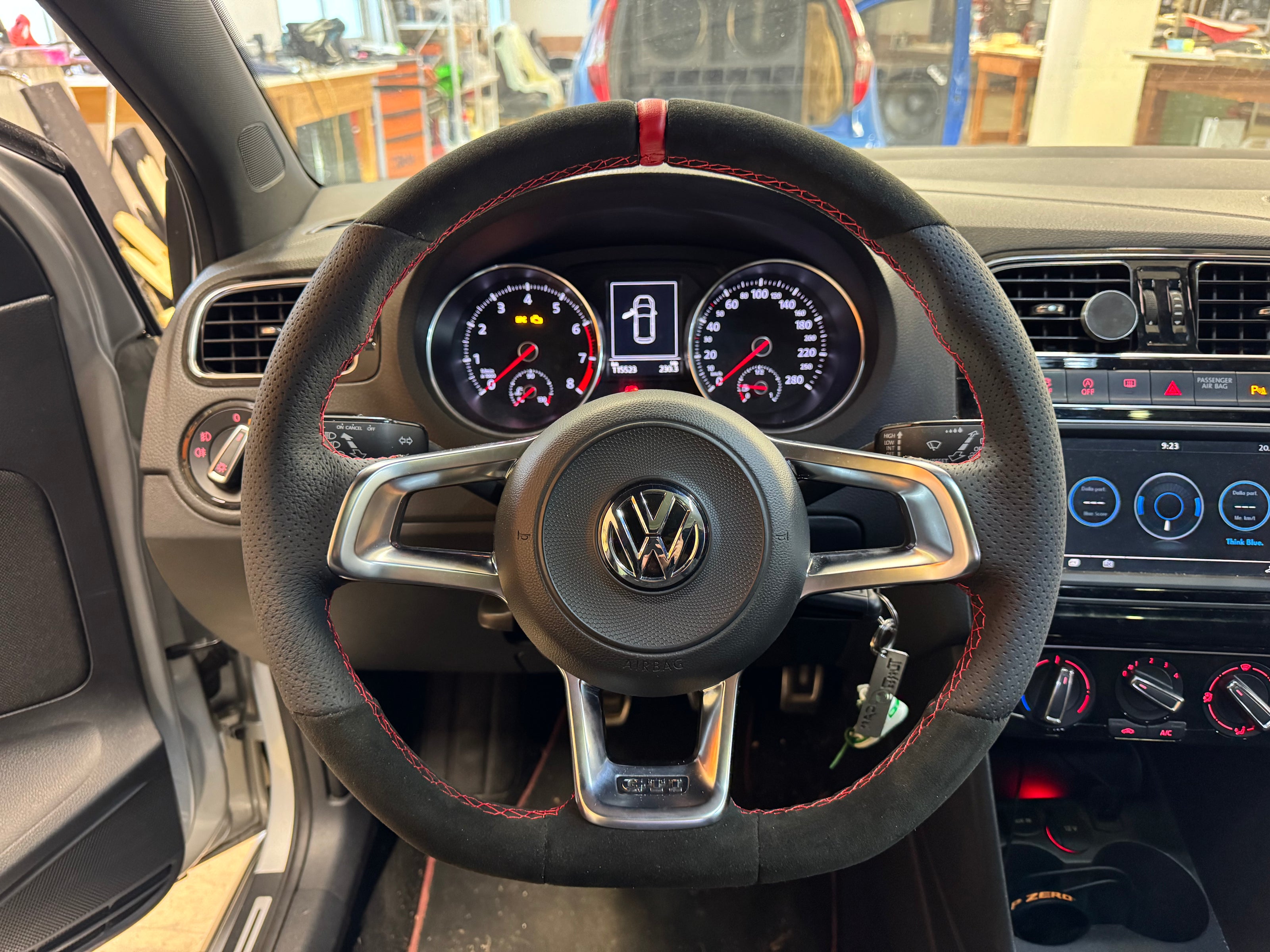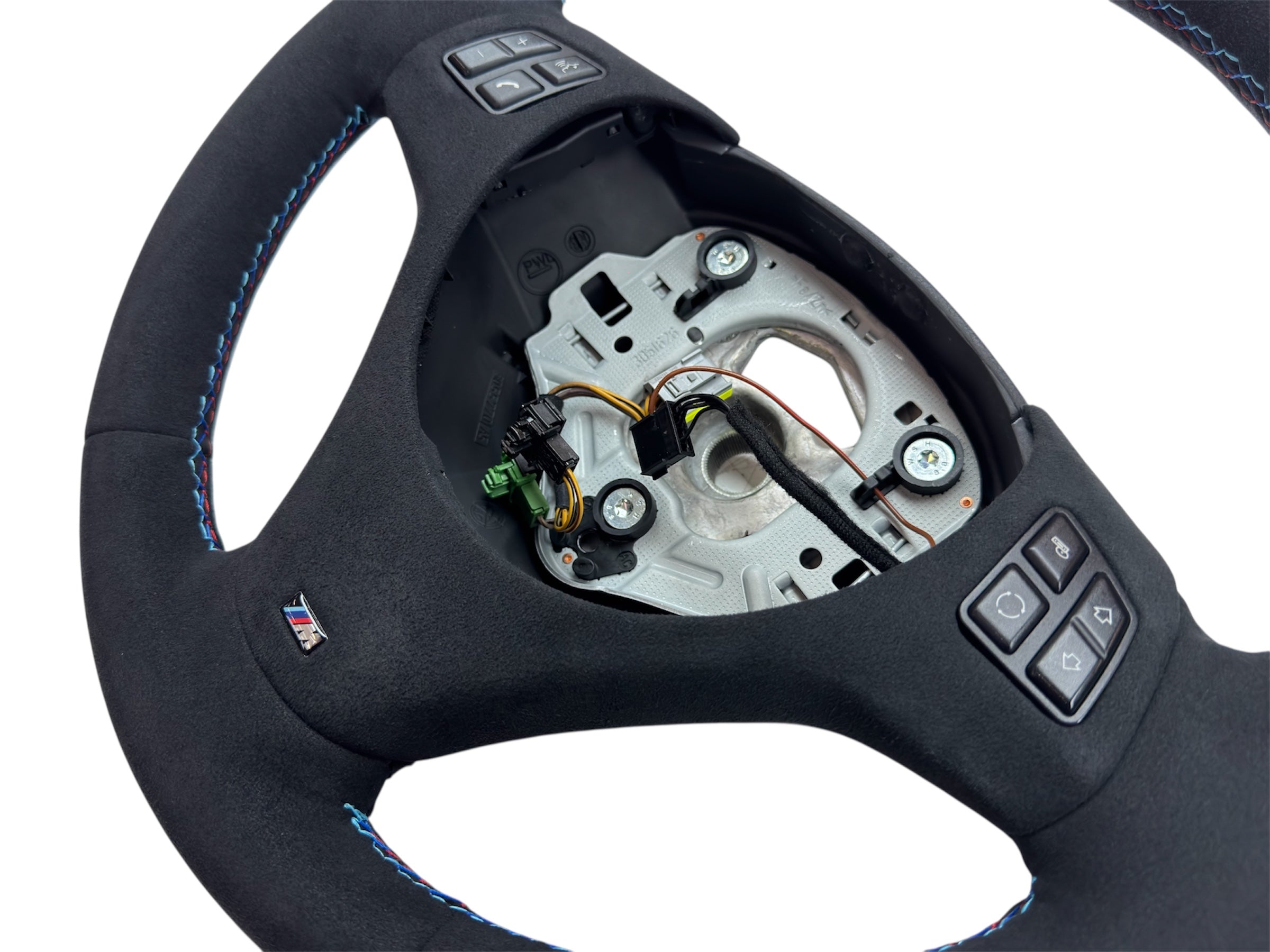 - Taglio del Materiale: L'Alcantara o il materiale scelto viene tagliato su misura per adattarsi perfettamente alla forma del volante.